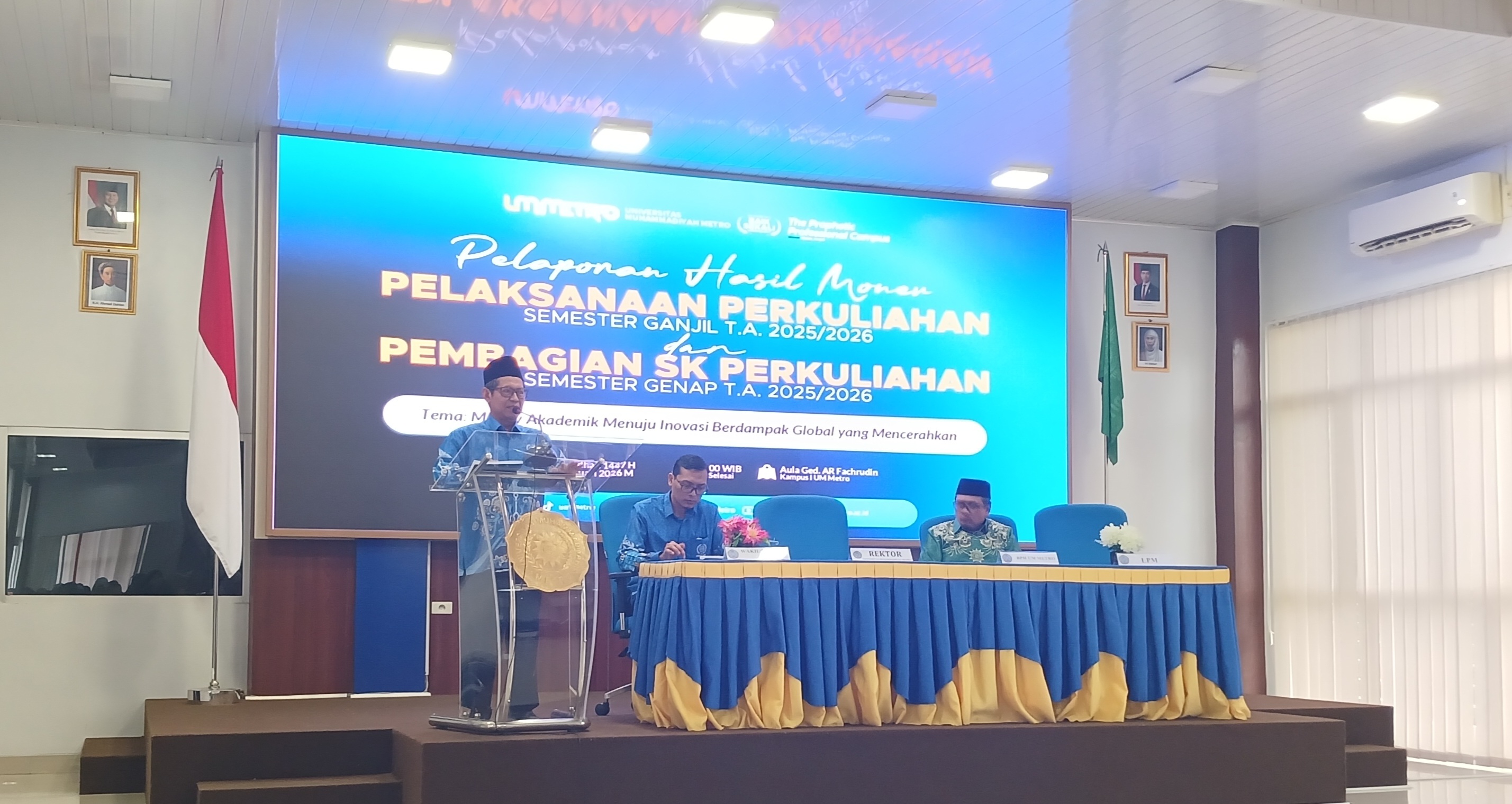 Penghargaan diserahkan secara langsung oleh Rektor Universitas Muhammadiyah Metro bersama Kepala LPM di hadapan seluruh dosen UM Metro. Momentum apresiasi tersebut berlangsung di Aula AR Fachrudin Kampus 1 UM Metro pada Selasa, 24 Februari 2026.